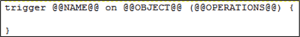 The @@OBJECT@@ and @@OPERATIONS@@ variables reflect the Object Name and Apex Trigger Operations (like “before insert”) you enter when you create an Apex Trigger.
