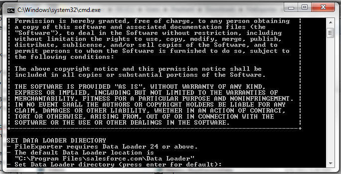 The requirements for using FileExporter are very straight forward. As of this post, the tool only works on Windows, XP or above. You need a valid Salesforce login. The interface asks if you are using a Production or Sandbox login, but we found that the tool works perfectly well with a Developer org as well. Lastly, you need to have the v24.0 of the Salesforce Apex Dataloader. You can download that from within your Salesforce instance under Data Management/Data Loader in your Administration Setup.