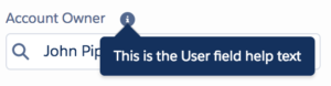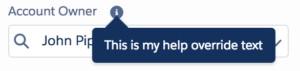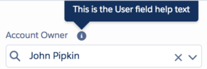 <c:LightningLookup sObjectField="Account.OwnerId" displayedFieldName="Name" valueFieldName="Id" label="Account Owner:" selectedValue="{!v.myLookupValue}" showHelp="true" helpText="This is my help override text"/>