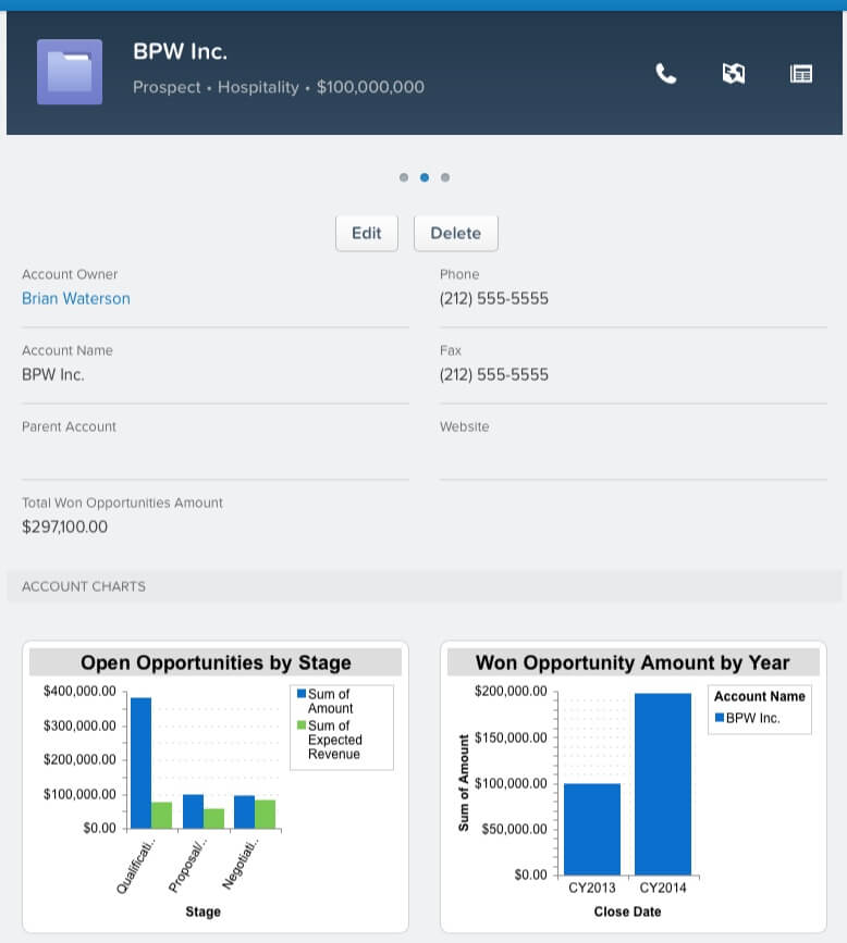 These embedded report charts are now be available when viewing records through the Salesforce 1 app, meaning you have access to the same information whether you’re viewing the record on your computer or on your smart phone. If a member of a sales team is about to visit a client, he or she can very quickly and easily see their current opportunities or history of won business as they are walking into the building.