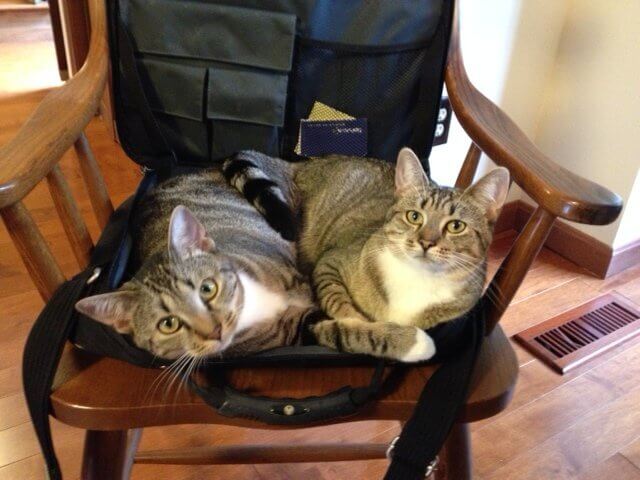 "Maggie, Mollie, and I adopted each other a little over six years ago. They were tiny kittens, daughters of a stray who had been rescued by the great people at Baypath Humane Society. Even as kittens, they enjoyed helping me with design projects. They’re particularly good at shredding paper (although they don’t always wait until I’m done with it) and chewing power cords (although they don’t always wait until the cords are unplugged). While I’m working, they like to keep up with what’s happening in the world by watching YouTube videos. "
