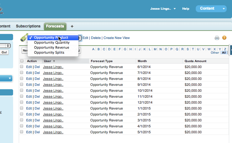 These are powerful because until now, only one option could be selected. In addition, with revenue, quantity, and quota attainment all on one screen, the Forecasts UI could get very noisy.