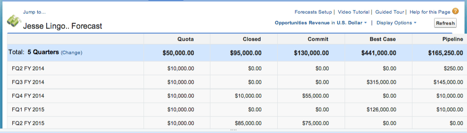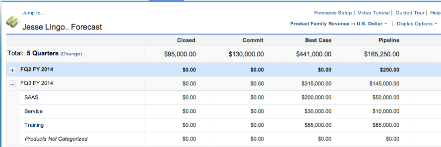 Forecasting is not a widely used out-of-the-box feature of Salesforce customers worldwide, but with the new Multiple Forecast Types in Spring '14, as well as other recent enhancements, it's really worth another look! This is especially true for sales organizations that want to have target versus actual information and/or the ability for sales managers to adjust their sales teams' Forecast numbers.
