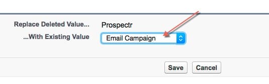 D-Day arrives; I back up the Leads Object and perform the data export and import of Lead Source to Lead Source Detail field. Then I go to Setup-> Leads->Fields->Lead Source and delete the old picklist values, selecting the new picklist field to replace the deleted value.